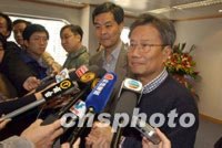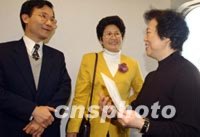 中新社通訊:董建華競選辦公室首日開放訪者如潮 2001年12月15日 08:03 ![]() 設(shè)在中環(huán)圣約翰大廈的“董建華競選辦公室”,十二月十五日首次對媒體開放。中新社傳真 任海霞 攝 ![]() “董建華競選辦公室”主任梁振英、鄭維健十二月十五日向媒體介紹競選辦公室的有關(guān)情況。中新社傳真 任海霞 攝