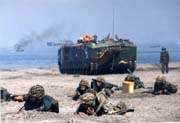 假想解放軍登陸 臺(tái)軍今早在澎湖實(shí)彈演習(xí)(圖) 2001年12月27日 15:58 臺(tái)軍進(jìn)行沙灘演習(xí)(資料圖片) 中新網(wǎng)香港12月27日消息:臺(tái)北訊,臺(tái)灣軍方的澎湖“國(guó)防司令部”,今天清晨實(shí)施反登陸實(shí)彈演習(xí),操演過(guò)程中試射各種火炮。 澎湖“國(guó)防司令部”今早集結(jié)部隊(duì),在西嶼外海展開(kāi)“聯(lián)信240號(hào)”演習(xí)。其間進(jìn)行沙盤(pán)推演,圖上作業(yè)標(biāo)定目標(biāo),隨即用軍方的105、155榴彈炮進(jìn)行對(duì)海射擊。 之后,臺(tái)軍使用40防空炮對(duì)空射擊,進(jìn)行擊機(jī)的操演。 臺(tái)灣軍方表示,操演是以實(shí)兵實(shí)彈射擊,已驗(yàn)證臺(tái)軍的陸?杖娐(lián)合作戰(zhàn)能力。 有參加演習(xí)的軍官聲稱,此次軍事操演的目的是假想解放軍在臺(tái)登陸,臺(tái)軍則以榴炮和機(jī)槍炮“綿密的射擊”,“阻止”解放軍登陸。 臺(tái)軍方聲稱,演習(xí)中,整個(gè)反舟波火炮射擊都命中目標(biāo)。 |