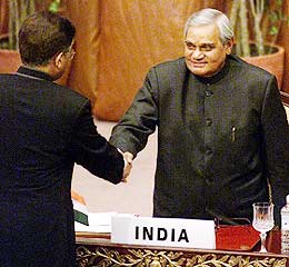 巴總統(tǒng)在南亞首腦會向印總理伸出友誼之手(圖) 2002年01月05日 15:45 ![]() 中新網(wǎng)北京1月5日消息:巴基斯坦總統(tǒng)穆沙拉夫在剛剛揭幕的南亞區(qū)域合作聯(lián)盟首腦會議上發(fā)表演說后,主動與印度總理瓦杰帕伊握手。 巴基斯坦總統(tǒng)穆沙拉夫發(fā)表演說指出,所有與會代表地位必須平等,各國要尋求長遠(yuǎn)的辦法,解決地區(qū)內(nèi)事務(wù)爭端.他還說,巴基斯坦是恐怖主義的受害者,并重申他已準(zhǔn)備好同印度展開對話。他在結(jié)束發(fā)言之前,主動提到與印度的緊張關(guān)系,并表明愿意隨時與印度展開和平對話以及愿意伸出真正友誼之手,然后他就步向瓦杰帕伊與他握手。 而印度總理瓦杰帕伊則感謝穆沙拉夫主動向他伸出友誼之手,并呼吁雙方停止無意義的暴力沖突。他稱印度一直積極尋求同巴基斯坦和談,但依然受到襲擊。他還說,印度在近二十年間不斷受國際恐怖主義侵襲,全球必須合作打擊恐怖主義。 印巴關(guān)系因?yàn)橛《葒鴷鲆u事件而惡化,雙方均在邊境部署軍隊并不時交火。印度總理瓦杰帕伊要求巴基斯坦采取強(qiáng)硬手段對付境內(nèi)極端份子,否則拒絕與穆沙拉夫直接對話。兩國領(lǐng)袖昨晚在尼泊爾皇宮參加晚宴期間沒有直接接觸。 |