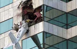 未獲批準(zhǔn)強(qiáng)行起飛 美15歲高中生駕機(jī)撞樓(圖) 2002年01月06日 09:17 ![]() 撞樓現(xiàn)場 中新網(wǎng)北京1月6日消息:外電報(bào)道說,一架小型飛機(jī)5日下午撞進(jìn)美國佛羅里達(dá)州坦帕市一棟40層大樓后墜毀。墜毀飛機(jī)的駕駛員是一個(gè)15歲的高中生。根據(jù)當(dāng)?shù)胤梢?guī)定,他不能單獨(dú)駕駛飛機(jī)。 據(jù)美聯(lián)社報(bào)道,雖然聯(lián)邦調(diào)查局初步認(rèn)為此次飛機(jī)撞擊大樓事件與恐怖主義無關(guān),但仍派遣了調(diào)查人員前往現(xiàn)場。 美國海岸警衛(wèi)隊(duì)官員說,這架飛機(jī)是在沒有獲得有關(guān)當(dāng)局批準(zhǔn)的情況下起飛的,而且駕駛員對(duì)要求其降落的信號(hào)置之不理。海岸警衛(wèi)隊(duì)直升飛機(jī)隨即對(duì)這架單引擎飛機(jī)進(jìn)行了跟蹤飛行。當(dāng)時(shí),兩架飛機(jī)距離最近時(shí)只有幾米。海岸警衛(wèi)隊(duì)官員皮特曼毫不懷疑小型飛機(jī)上的駕駛員明白直升飛機(jī)要求其降落的信號(hào)。 目前還沒有關(guān)于人員傷亡的報(bào)道,大樓在撞擊后沒有起火。飛機(jī)的機(jī)尾還懸掛在大樓外側(cè)。 |