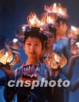圖:桂林少女的蓮花舞 2002年01月13日 09:53 ![]() 一隊(duì)桂林少女扮作荷花仙子,為新年伊始到此的中外游客表演夜色荷燈舞。中新社記者 賈國(guó)榮 攝 |