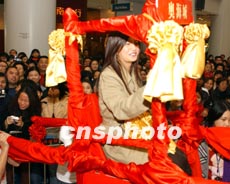圖文:趙薇香港坐花轎宣傳新片 笑言很安全 2002年02月04日 16:00 ![]() 中新網(wǎng)香港2月4日消息:趙薇為新戲《天下無(wú)雙》做宣傳昨日赴港,安排她與王菲乘坐花轎到場(chǎng),而兩男主角梁朝偉及張震,一個(gè)踢轎門(mén)、一個(gè)接花球。雖說(shuō)趙薇近日很少公開(kāi)露面,但她的影迷仍熱情未減。 據(jù)香港媒體報(bào)道,這次是她自“遇襲”之后首度在香港公開(kāi)露面,加上又人多,問(wèn)到她是否會(huì)感壓力及害怕?趙薇則輕松的答:“不會(huì),謝謝王菲、梁朝偉一直支持我,壓力全在他們身上罷了”,而且覺(jué)得身在香港也比較很安全。 相關(guān)報(bào)道:圖:梁朝偉王菲趙薇張震聯(lián)手在香港推介《天下無(wú)雙》 相關(guān)報(bào)道:《天下無(wú)雙》首映藏玄機(jī) 趙薇 相關(guān)報(bào)道:圖文:《天下無(wú)雙》拍竣 王菲趙薇粉碎不和傳言 相關(guān)報(bào)道:圖文:歷經(jīng)波瀾“小燕子”趙薇片場(chǎng)無(wú)聲對(duì)記者 相關(guān)報(bào)道:趙薇有沒(méi)有被潑糞?香港某雜志刊登清晰照片 相關(guān)報(bào)道:趙薇公開(kāi)致歉 稱軍旗裝事件是“無(wú)心之失”