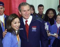 第十九屆冬季奧林匹克運動會開幕式組圖 2002年02月09日 11:26 ![]() 本屆冬季奧運會會旗入場。(美聯(lián)圖) ![]() 美國運動員代表和紐約的消防員、警察代表持世貿(mào)中心破損的美國星條旗入場。(美聯(lián)圖) 冬奧會開幕式會場鳥瞰。 ![]() 美國總統(tǒng)布什開幕式前與美籍華裔知名花樣滑冰選手關(guān)穎珊合影。