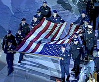 圖:第十九屆冬季奧運(yùn)會(huì)在美國鹽湖城開幕 2002年02月09日 17:17 ![]() 紐約世貿(mào)中心廢墟里挖出的殘破的美國國旗,在運(yùn)動(dòng)員、消防隊(duì)員和警察護(hù)送下,進(jìn)入第十九屆美國鹽湖城冬季奧運(yùn)會(huì)開幕式會(huì)場。第十九屆冬季奧運(yùn)會(huì)二月八日(當(dāng)?shù)貢r(shí)間)在美國鹽湖城開幕。