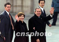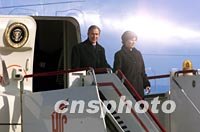 組圖:美國總統(tǒng)布什抵達(dá)北京 2002年02月21日 11:10 ![]() 美國總統(tǒng)布什乘坐的“空軍一號”二十一日上午降落在北京首都國際機(jī)場。中新社記者 毛建軍 攝 ![]() 美國總統(tǒng)布什與夫人二十一日上午乘專機(jī)抵達(dá)北京首都國際機(jī)場,開始為期兩天的工作訪問。中新社圖 毛建軍 攝