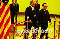 圖:江主席歡迎布什 2002年02月21日 13:03 ![]() 中國(guó)國(guó)家主席江澤民二十一日在北京人民大會(huì)堂舉行儀式,歡迎美國(guó)總統(tǒng)布什訪問(wèn)。中新社記者 賈國(guó)榮 攝