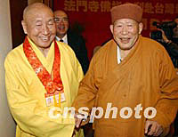 組圖:法門寺佛指舍利赴臺供奉新聞發(fā)布會 2002年02月22日 09:54 ![]() 法門寺佛指舍利赴臺供奉新聞發(fā)布會,日前在西安喜來登大酒店舉行,中國佛教協(xié)會等有關(guān)人士和臺灣佛教人士以及來自大陸、港臺的眾多記者參加了發(fā)布會。圖為臺灣惟覺法師與法門寺凈一方丈在發(fā)布會上。中新社記者 錢興強 攝 ![]() 法門寺佛指舍利赴臺供奉新聞發(fā)布會,日前在西安喜來登大酒店舉行,中國佛教協(xié)會等有關(guān)人士和臺灣佛教人士以及來自大陸、港臺的眾多記者參加了發(fā)布會。圖為臺灣星云法師為賓客簽書。中新社記者 錢興強 攝