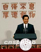 圖:胡錦濤副主席在清華大學(xué)致辭 2002年02月22日 11:00 ![]() 中國國家副主席胡錦濤二十二日在母校北京清華大學(xué)講話,歡迎美國總統(tǒng)布什前來演講。中新社記者 賈國榮 攝