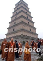 圖:兩岸佛教人士參觀大雁塔 2002年02月22日 13:52 ![]() 在西安參加法門寺佛指舍利赴臺灣地區(qū)瞻禮(供奉)活動的兩岸佛教人士,二十二日上午來到西安大雁塔參觀。中新社記者 錢興強 攝