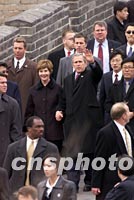 圖:布什與夫人在八達(dá)嶺長城 2002年02月22日 19:26 ![]() 美國總統(tǒng)布什與夫人勞拉二十二日下午在警衛(wèi)和陪同人員簇?fù)硐,興致勃勃地登上北京八達(dá)嶺長城。中新社記者 毛建軍 攝