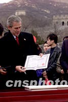 圖:布什獲得八達嶺長城登城證書 2002年02月22日 19:27 ![]() 美國總統(tǒng)布什二十二日登上北京八達嶺長城后,獲得登城證書。中新社記者 毛建軍 攝
