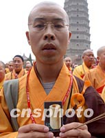 ![]() 法門寺佛指舍利赴臺灣地區(qū)瞻禮(供奉)法會(huì)二十二日在西安法門寺舉行,來自臺灣的恭迎團(tuán),由大陸佛教人士組成的護(hù)送團(tuán)以及護(hù)法團(tuán)等各界有關(guān)人士千余人匯集法門寺。中新社記者 錢興強(qiáng) 攝