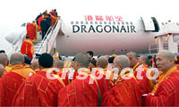 組圖:專機(jī)運(yùn)載佛指舍利赴臺(tái) 2002年02月23日 17:24 ![]() 法門寺佛指舍利赴臺(tái)灣地區(qū)瞻禮(供奉)恭迎團(tuán)、護(hù)法團(tuán),以及兩岸佛教人士二十三日在西安咸陽(yáng)機(jī)場(chǎng)乘專機(jī)經(jīng)香港赴臺(tái)。 中新社圖 錢興強(qiáng) 攝 ![]() 法門寺佛指舍利二十三日運(yùn)抵西安咸陽(yáng)國(guó)際機(jī)場(chǎng)。圖為現(xiàn)場(chǎng)通過(guò)升降機(jī)將舍利塔送入飛機(jī)。中新社圖 錢興強(qiáng) 攝