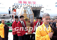 圖:法門寺佛指舍利抵達(dá)臺(tái)北機(jī)場 2002年02月23日 19:20 ![]() 法門寺佛指舍利二十三日下午抵達(dá)臺(tái)北機(jī)場。作者:中央社攝/中新社