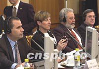 圖:世博會考察團(tuán)在北京聽取上海申辦陳述 2002年03月11日 16:34 ![]() 十一日,在北京釣魚太國賓館參加“申辦2010年上海世博會陳述會談”的加拿大代表、考察團(tuán)長長、國際展覽局副主席兼執(zhí)委會主席卡門.塞文女士(左二)、古巴代表胡安—馬里奧·拉米蓋依羅先生(左一)、德國代表赫爾穆德先生(左三)等,一同聽取中國代表的陳述。中新社記者 鄒憲 攝