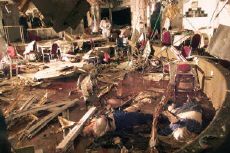炸彈中混入鐵釘 以色列自殺襲擊死者增至20人 2002年03月28日 08:57 ![]() 爆炸現(xiàn)場一片狼藉(法新社) 中新網(wǎng)北京3月28日消息:以色列電臺今天報道警方新的統(tǒng)計數(shù)字說,北部海濱城市內(nèi)塔尼亞自殺炸彈襲擊造成20人死亡,包括襲擊者本人。 據(jù)法新社報道,警方表示總共有73名傷者入院治療,其中26人傷勢嚴(yán)重。最初的數(shù)據(jù)顯示至少有16名以色列人死亡。 當(dāng)?shù)貢r間27日19時30分左右,一名巴勒斯坦青年混進(jìn)位于內(nèi)坦尼亞市中心的帕克飯店,在舉行“逾越節(jié)之夜”慶;顒拥娜巳褐幸私壴谏砩系谋ㄑb置。由于肇事者在爆炸物中混入了大量鐵釘,因而造成重大人員傷亡。 巴勒斯坦主流派法塔赫下屬的“阿克薩烈士旅”及伊斯蘭抵抗運(yùn)動(哈馬斯)都宣稱對此次爆炸事件負(fù)責(zé)。 相關(guān)報道:以色列再遭自殺性爆炸襲擊 15人死亡130人受傷