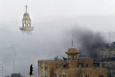 圖:以色列士兵與女友分別前相擁而吻 2002年04月03日 14:17 圖為色列士兵與女友相擁而吻 起火的教堂 在耶路撒冷市和西岸城市伯利恒之間地一處檢查站,一名以色列士兵與女友相擁而吻。以軍進入了古城伯利恒,并向教堂開火,一名神父被殺,另外六名修女受傷。法新圖