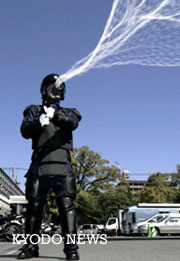 圖文:日本用"網(wǎng)槍"把足球流氓一"網(wǎng)"打盡 2002年04月05日 14:21 ![]() 大分縣警察總部警員身穿防護(hù)服,發(fā)射“網(wǎng)槍”(共同社圖) 本世界杯專稿版權(quán)歸中新網(wǎng)與TOM網(wǎng)站共同擁有。如需刊用,務(wù)經(jīng)雙方正式書面授權(quán)。 中新網(wǎng)北京4月5日消息:世界杯比賽主辦地之一的日本大分縣警察總部世界杯警備對(duì)策室4日公開了可以制服因興奮而到處胡鬧的足球流氓的“網(wǎng)槍”。 據(jù)共同社報(bào)道,在大約5米處發(fā)射“網(wǎng)槍”后,強(qiáng)化尼龍制成的網(wǎng)就向四方擴(kuò)展,展開面積大約5米,可以捉住2、3人。據(jù)說(shuō)“就象落網(wǎng)的魚,自己絕對(duì)掙脫不出來(lái)。”“網(wǎng)槍”是國(guó)產(chǎn)的,每發(fā)射一次花費(fèi)2萬(wàn)日元。 “網(wǎng)槍”計(jì)劃被設(shè)置在舉行比賽的大分綜合體育場(chǎng)(大分市)以及附近車站的周圍。