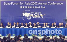 圖:博鰲亞洲論壇首屆年會(huì)開幕 2002年04月12日 13:46 ![]() 博鰲亞洲論壇首屆年會(huì)十二上午在海南博鰲開幕,國務(wù)院總理朱镕基、日本首相小泉純一郎、泰國總理他信、韓國總理李漢東、香港特別行政區(qū)行政長官董建華、澳門特別行政區(qū)行政長官何厚鏵等出席開幕式。中新社圖 滿會(huì)喬 攝