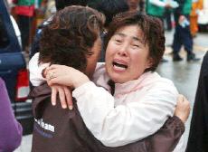 圖:遇難韓國人家屬擁抱痛哭 2002年04月15日 19:20 ![]() 失事飛機(jī)上的遇難韓國人家屬擁抱痛哭。法新社圖