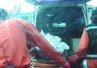 圖:4·15墜機事件喪生者被送出失事現(xiàn)場 2002年04月17日 10:29 ![]() 17日,在中國國航4·15失事現(xiàn)場,韓國當?shù)卣沙鋈Ф嗑仍藛T在大雨后的山上搜索失蹤人員,搜索到喪生者的尸體并運送下山。