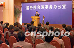 ![]() 國務(wù)院臺灣事務(wù)辦公室二十四日在北京釣魚臺大酒店舉行新聞發(fā)布會,由新聞發(fā)言人李維一回答記者提問。中新社記者 毛建軍 攝