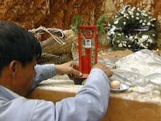 ![]() 在耶路撒冷爆炸中喪生的中國工人蔡獻(xiàn)陽和林春美的遺體25日晚運(yùn)抵福建莆田死難者所在的村子,并分別于26日上午8時(shí)和下午1時(shí)在家人和親友的安排下各自舉行了遺體的安葬儀式。