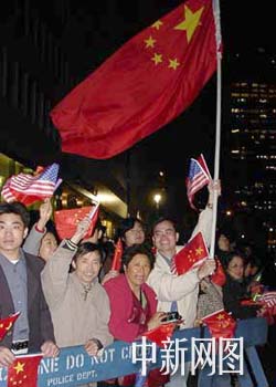 圖文特寫:華僑華人歡迎胡錦濤 點(diǎn)亮紐約"不夜城" 2002年04月29日 13:41 ![]() ![]() 中新社 趙海燕、陳建/攝 中新網(wǎng)紐約四月二十九日消息(記者陳建趙海燕)持續(xù)了一天的春雨使原本在周末就冷清的曼哈頓中城更顯得行人稀少。但二十八日黃昏時(shí)分當(dāng)曼哈頓漸漸進(jìn)入暮色的時(shí)候,卻開始出現(xiàn)了熱鬧的人群。 人群最終聚集在曼哈頓中城五十街與公園大道的交匯處,中國國家副主席胡錦濤今天凌晨抵達(dá)紐約訪問下榻在位于這里的華爾道夫酒店。華僑華人熱烈的行動(dòng)與熱情的標(biāo)語使這里成為“不夜城”紐約午夜的最亮點(diǎn)。 二十八日晚上十點(diǎn)多鐘的時(shí)候,雨已經(jīng)停了,但氣溫剛剛超過攝氏十度,站在華爾道夫酒店外以及對面和側(cè)面的人行道上的華僑華人還是越來越多。他們將帶來的橫幅幾個(gè)人共同高舉過頭頂,橫幅上寫“歡迎胡錦濤訪問美國”、“中美友好萬歲”等。紐約已經(jīng)入夜,華僑華人特意用熒光效果制作的標(biāo)語顯得非常耀眼。 為了這次的迎接,紐約華僑華人已經(jīng)準(zhǔn)備了很長時(shí)間。設(shè)計(jì)歡迎橫幅,設(shè)計(jì)歡迎隊(duì)伍,甚至設(shè)計(jì)紀(jì)念品。在他們拿到定制的歡迎橫幅時(shí)非常興奮,打電話通知朋友們來看,并準(zhǔn)備將橫幅掛在汽車上在紐約的中國城巡游一番。 前天,由中國的陳、胡、袁三姓氏華人組成的至孝篤親公所率先在會(huì)所掛起了五星紅旗以及歡迎胡錦濤訪美的大幅標(biāo)語,并將胡錦濤稱為“宗長”。中美友好協(xié)會(huì)等團(tuán)體還在報(bào)紙上刊登了歡迎胡錦濤訪美的恭和廣告。中國旅美科協(xié)發(fā)表公開信敦促美國恪守中美三個(gè)聯(lián)合公報(bào)的承諾,堅(jiān)信胡錦濤訪美必將促進(jìn)中美兩國在各領(lǐng)域的交流合作。美國江浙工商總會(huì)特別設(shè)計(jì)制作了紀(jì)念帽準(zhǔn)備送給胡錦濤副主席,從昨晚開始他們站在歡迎隊(duì)伍中,每個(gè)會(huì)員都頭戴一頂紀(jì)念帽,非常引人注目。 當(dāng)人們估計(jì)胡錦濤乘坐的汽車就要到達(dá)酒店的時(shí)候,歡迎人群開始出現(xiàn)更加熱烈的氣氛。有些華僑華人高聲唱起了中國國歌以及五星紅旗高高飄揚(yáng)、團(tuán)結(jié)就是力量等歌曲,手舉橫幅的人開始有節(jié)奏地抖動(dòng)橫幅,人們從不同的角度注視著華爾道夫酒店。這家具有悠久歷史的紐約著名酒店曾多次接待包括中國在內(nèi)的世界各國的著名人物。 胡錦濤訪美之行受到各界的關(guān)注。二十七日胡錦濤結(jié)束對馬來西亞和新加坡訪問后抵達(dá)美國夏威夷,繼續(xù)訪美。傳媒即將焦點(diǎn)對準(zhǔn)胡錦濤,美聯(lián)社、CNN、BBC等英文媒體都給以圖文報(bào)道,當(dāng)?shù)厝A文媒體更用一版大部分版面報(bào)道有關(guān)內(nèi)容,不少華文報(bào)紙還開設(shè)相關(guān)專欄詳細(xì)報(bào)道。 二十七日在夏威夷,胡錦濤發(fā)表機(jī)場講話明確表示了他此次訪美的目的:落實(shí)江澤民主席和布什總統(tǒng)北京會(huì)晤達(dá)成的共識(shí),加強(qiáng)中美高層接觸,增進(jìn)相互了解,推動(dòng)中美建設(shè)性合作關(guān)系向前發(fā)展。這也正是旅美華人所期待的。 歡迎的人群在凌晨一點(diǎn)才漸漸離去。胡錦濤將在今天專門安排時(shí)間再次與華僑華人和留學(xué)生代表見面。(完)