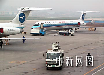 圖:“五七”空難后大連機場工作秩序如常 2002年05月10日 10:32 ![]() “五七”空難已經(jīng)過去兩天,大連機場工作秩序如常,圖為與失事客機同類型的麥道客機正在進行正常運營。目前,北方航空公司尚有同類型的麥道八二客機二十九架。中新社記者 王麗南 攝