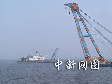 ![]() 有關(guān)部門出動(dòng)巨型起吊設(shè)備打撈五七空難失事客機(jī)機(jī)頭。中新社記者 王麗南 攝