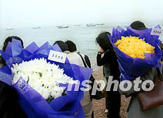 ![]() 在大連“五·七”空難中失去親人的家屬們,連日紛紛到海濱拋撒鮮花,寄托無盡哀思。王麗南 攝