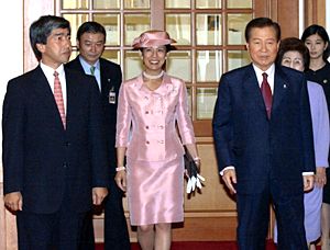 韓國總統(tǒng)金大中會見日本王室成員高圓王子(圖) 2002年05月30日 16:55 ![]() 韓國總統(tǒng)金大中會見日本王室成員高圓王子。(共同社圖) 中新網(wǎng)漢城5月30日消息:韓國總統(tǒng)金大中今天會見了日本王室成員、日本明仁天皇的表弟高圓王子伉儷。 昨天到達(dá)韓國的高圓王子和久子王妃,今天拜會了金大中。雙方進(jìn)行了45分鐘的會談,比原先預(yù)定的時間稍長。 在會談中,金大中總統(tǒng)告訴高圓王子夫婦,“我相信(你們的來訪)對于韓國和日本兩國關(guān)系的發(fā)展,是一個重要的事件! 據(jù)悉,作為主管體育的日本王室成員,高圓王子夫婦將參加明天晚上在漢城開幕的世界杯開幕式。這也是自從二戰(zhàn)以來,日本王室成員首次來韓國訪問,被認(rèn)為是發(fā)展兩國關(guān)系的一個重要契機(jī)。 本屆世界杯比賽由日本和韓國聯(lián)合舉辦,比賽開幕式31日晚上在韓國舉行,經(jīng)過一個月的鏖殺,最終的大幕將在6月30日在日本的橫濱落下。