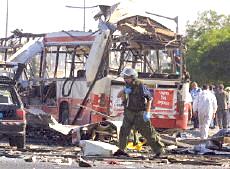 耶路撒冷市中心公共汽車爆炸案已有18人死亡(圖) 2002年06月18日 15:29 ![]() ![]() 被襲擊的公共汽車 中新網(wǎng)北京6月18日消息:以色列電視二臺(tái)18日?qǐng)?bào)道說,耶路撒冷市中心當(dāng)日上午發(fā)生公共汽車自殺炸彈襲擊事件,造成17人死亡。 報(bào)道沒有說明死亡人數(shù)中是否包括自殺炸彈襲擊者本人。這起自殺性炸彈襲擊還造成車上32人受傷。 這輛公共汽車從耶路撒冷南郊的吉羅猶太人區(qū)開往市中心,當(dāng)時(shí)正是交通高峰時(shí)段。 阿克薩烈士旅宣稱對(duì)耶路撒冷公汽爆炸案負(fù)責(zé) 中新網(wǎng)北京6月18日消息:黎巴嫩真主黨游擊隊(duì)的電視臺(tái)18日接到匿名電話,此人聲稱“阿克薩烈士旅”對(duì)耶路撒冷爆炸案負(fù)責(zé)。 德新社援引該電視臺(tái)的報(bào)道說,這次炸彈襲擊是為了“阿克薩烈士旅”在伯利恒的領(lǐng)導(dǎo)人蘇布赫17日被殺而進(jìn)行的報(bào)復(fù)。 耶路撒冷南部18日交通高峰時(shí)段發(fā)生公共汽車爆炸案,造成13人死亡,40人受傷,其中5人情況危急。 哈馬斯組織也聲稱對(duì)耶路撒冷公汽爆炸案負(fù)責(zé) 中新網(wǎng)北京6月18日消息:巴勒斯坦激進(jìn)的“伊斯蘭抵抗運(yùn)動(dòng)”(哈馬斯組織)18日宣稱對(duì)耶路撒冷公共汽車爆炸案負(fù)責(zé)。 有人給法新社打去匿名電話,聲稱哈馬斯組織的軍事派別“卡薩姆旅”實(shí)施了這次行動(dòng)。 另據(jù)報(bào)道,黎巴嫩真主黨游擊隊(duì)的電視臺(tái)也接到匿名電話,此人聲稱“阿克薩烈士旅”對(duì)耶路撒冷爆炸案負(fù)責(zé)。 耶路撒冷市中心18日交通高峰時(shí)段發(fā)生公共汽車爆炸案,造成17人死亡,約30人受傷。 沙龍親臨耶路撒冷爆炸現(xiàn)場(chǎng)拒談巴勒斯坦建國(guó) 中新網(wǎng)北京6月18日消息:在耶路撒冷市中心發(fā)生造成17人死亡的公汽爆炸案后,以色列總理沙龍18日拒絕巴勒斯坦建國(guó)。 據(jù)法新社報(bào)道,沙龍?jiān)谑掳l(fā)現(xiàn)場(chǎng)對(duì)記者表示:“你還能談什么巴勒斯坦國(guó)家!边@是沙龍出任總理以來首次親往巴勒斯坦人自殺炸彈襲擊現(xiàn)場(chǎng)視察。 沙龍?jiān)跀?shù)十名警察和保鏢的簇?fù)硐卤硎荆骸拔覀兘裉煲姷降氖前屠账固箍植乐髁x,我們必須打擊這種恐怖主義,這也正是我們?cè)谧龅摹!?/p> 美國(guó)官員最近提出建立臨時(shí)的巴勒斯坦國(guó)家的構(gòu)想,并通過談判確定其最終的形式。 18日的自殺性炸彈襲擊發(fā)生之際,美國(guó)總統(tǒng)布什正準(zhǔn)備宣布其中東和平新戰(zhàn)略。 耶路撒冷公汽爆炸案造成18名以色列人死亡 中新網(wǎng)北京6月18日消息:18日在耶路撒冷市中心,一名巴勒斯坦人在公共汽車上引爆炸彈,造成18名以色列人死亡,其中包括一些學(xué)童。 據(jù)法新社報(bào)道,醫(yī)院官員透露說,48名傷者正在接受治療,其中包括數(shù)名年齡在10到12歲之間的兒童。 報(bào)道還說,一名婦女在入院后不久就不治身亡,另外還有6名傷者的傷勢(shì)嚴(yán)重。 相關(guān)報(bào)道:耶路撒冷南部發(fā)生公車爆炸 13人死亡40人受傷