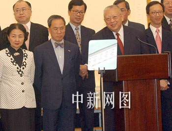 組圖:香港特首董建華與“新內(nèi)閣”拍攝全家福 2002年06月24日 12:36 ![]() 董建華與“新內(nèi)閣”拍攝全家福。香港特首董建華6月24日在香港禮賓府宣布二十一名“新內(nèi)閣”成員名單后,與將肩負重任的高官拍攝全家福。中新社傳真任晨鳴攝 ![]() 董建華宣布“新內(nèi)閣”名單。香港特首董建華6月24日在香港禮賓府宣布二十一名“新內(nèi)閣”成員名單。中新社傳真洪少葵攝 ![]() 曾蔭權梁錦松梁愛詩繼續(xù)輔佐董建華。香港特首董建華6月24日在香港禮賓府宣布二十一名“新內(nèi)閣”成員名單,原來的三位司長:政務司司長曾蔭權、財政司司長梁錦松、律政司司長梁愛詩留任。中新社傳真洪少葵攝