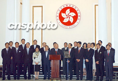 圖文綜述:香港特區(qū)政府問(wèn)責(zé)制高官閃亮出場(chǎng) 2002年06月24日 14:45 ![]() 香港特首董建華6月24日在香港禮賓府宣布二十一名“新內(nèi)閣”成員名單后,與將肩負(fù)重任的高官拍攝全家福。中新社傳真任晨鳴攝 中新社香港六月二十四日電(記者董會(huì)峰張淑琴)備受輿論關(guān)注的問(wèn)責(zé)制高官名單今天公布,香港特區(qū)行政長(zhǎng)官董建華形容這標(biāo)志著特區(qū)施政進(jìn)入新階段。 經(jīng)董建華提名、中央政府任命的十四位問(wèn)責(zé)高官是:政務(wù)司司長(zhǎng)曾蔭權(quán),財(cái)政司司長(zhǎng)梁錦松,律政司司長(zhǎng)梁愛(ài)詩(shī);工商及科技局局長(zhǎng)唐英年,房屋及規(guī)劃地政局局長(zhǎng)孫明揚(yáng),教育統(tǒng)籌局局長(zhǎng)李國(guó)章,衛(wèi)生福利及食物局局長(zhǎng)楊永強(qiáng),公務(wù)員事務(wù)局局長(zhǎng)王永平,民政事務(wù)局局長(zhǎng)何志平,保安局局長(zhǎng)葉劉淑儀,經(jīng)濟(jì)發(fā)展及勞工局局長(zhǎng)葉澍堃,環(huán)境運(yùn)輸及工務(wù)局局長(zhǎng)廖秀冬,財(cái)經(jīng)事務(wù)及庫(kù)務(wù)局局長(zhǎng)馬時(shí)亨,政制事務(wù)局局長(zhǎng)林瑞麟。 同現(xiàn)在相比,三位司長(zhǎng)人選未變;港府現(xiàn)有十六個(gè)決策局改組為十一個(gè)局,其中六位局長(zhǎng)來(lái)自公務(wù)員系統(tǒng),五位局長(zhǎng)屬“空降”,來(lái)自商界、專業(yè)界和學(xué)術(shù)界,他們分別是唐英年、李國(guó)章、何志平、廖秀冬和馬時(shí)亨。 為配合“七一”推行問(wèn)責(zé)制,林煥光、劉兆佳將分別出任特首辦主任、中央政策組首席顧問(wèn)。 董建華還公布了行政會(huì)議成員名單。問(wèn)責(zé)制下的行政會(huì)議成員,由現(xiàn)在的十二人增加到十九人。除上述十四位問(wèn)責(zé)高官外,五位非官方議員是:梁振英、田北俊、曾鈺成、鄭耀棠、廖長(zhǎng)城。 在今日于禮賓府舉行的記者會(huì)上,董建華同十四位問(wèn)責(zé)高官、五名行政會(huì)議非官方成員等大“亮相”。董建華在用粵語(yǔ)、英語(yǔ)致辭時(shí)表示,新任命的公布,標(biāo)志著主要官員問(wèn)責(zé)制的建立,標(biāo)志著香港特別行政區(qū)的施政進(jìn)入了新的階段。 董建華說(shuō):“未來(lái)五年里,我們會(huì)是一個(gè)勇于向市民負(fù)責(zé)的政府,是一個(gè)更開(kāi)明、開(kāi)放和進(jìn)取的政府,是一個(gè)更掌握和重視民情、民意的政府,也是一個(gè)對(duì)香港有高度承擔(dān)、決心與社會(huì)各方面通力合作的政府。” 他指出,新的班子來(lái)自社會(huì)各界,反映特區(qū)政府決心廣泛招納英才,確保在每一個(gè)政策范疇都有社會(huì)上最有能力的人帶領(lǐng),達(dá)到凝聚社會(huì)各方面的力量、融合社會(huì)各方面利益的目標(biāo)!靶碌陌嘧,清楚表明了我實(shí)踐對(duì)香港承諾的決心,展示我推行新的、有利于香港發(fā)展的施政路向的抱負(fù)。” 董建華還特別強(qiáng)調(diào),公務(wù)員隊(duì)伍是特區(qū)管治的基石,也是香港在全球化競(jìng)爭(zhēng)中的制勝因素。他會(huì)確保公務(wù)員體制的完整和公務(wù)員隊(duì)伍的穩(wěn)定得以維系,并要在此基礎(chǔ)上進(jìn)一步強(qiáng)化。 今日,董建華還公布了另外五位主要官員名單,他們負(fù)責(zé)領(lǐng)導(dǎo)紀(jì)律部隊(duì)、廉政公署和審計(jì)署。并宣布了十三位常任秘書(shū)長(zhǎng)的調(diào)派,他們將協(xié)助問(wèn)責(zé)局長(zhǎng)開(kāi)展日常工作。