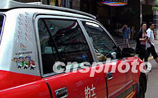 圖:香港的士裝飾慶;貧w祖國五周年標(biāo)語 2002年06月28日 20:37 ![]() 香港的士同業(yè)在香港回歸祖國五周年之際,在車身裝飾慶祝標(biāo)語,穿梭街頭。洪少葵 攝