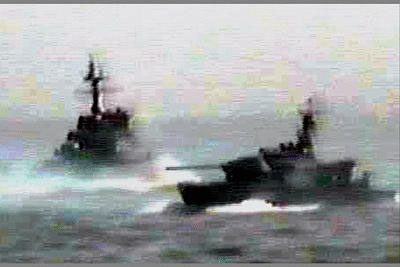圖:朝鮮警備艇與韓國(guó)海軍高速艦在海面對(duì)峙 2002年06月29日 19:57 ![]() 韓國(guó)和朝鮮艦艇今晨在黃海海面發(fā)生交火,造成韓方4人死亡,至少18人受傷。此圖顯示朝鮮警備艇(右)與韓國(guó)海軍高速艇正在對(duì)峙之中。圖片為現(xiàn)場(chǎng)韓國(guó)海軍作戰(zhàn)部隊(duì)攝像機(jī)拍攝。(韓國(guó)聯(lián)合通訊社圖) 相關(guān)報(bào)道:韓國(guó)總統(tǒng)金大中的小兒子涉嫌受賄等罪出庭受審 相關(guān)報(bào)道:事件綜述:朝韓雙方互相指責(zé) 稱將采取應(yīng)對(duì)措施 相關(guān)報(bào)道:韓朝海上交火事件:韓軍艇長(zhǎng)等4人死亡22人受傷 相關(guān)報(bào)道:朝韓艦艇在海上交火 金大中今晚不看世界杯比賽 相關(guān)報(bào)道:新聞背景:1998年至今韓朝兩國(guó)海難事故大事記 相關(guān)報(bào)道:圖文:朝鮮和韓國(guó)軍艦發(fā)生交火 4名韓國(guó)人死亡