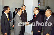 圖:香港特區(qū)政府高官在禮賓府迎候江澤民主席 2002年06月30日 22:00 ![]() 六月三十日晚,國家主席江澤民在香港出席特區(qū)政府成立五周年慶祝宴會。江澤民主席在香港禮賓府與特區(qū)政府“高官”握手。潘索菲 攝