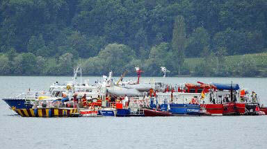 圖文:搜救船只在博登湖上搜尋 2002年07月02日 20:02 德國當(dāng)?shù)貢r間7月1日夜(北京時間2日晨),一架DHL公司的波音757貨機和俄羅斯巴什基爾航空公司的圖-154客機在德國巴登-符騰堡州于伯林根鎮(zhèn)上空相撞并墜毀,至少已造成71人死亡,其中包括52名兒童。圖為搜救船只在博登湖上搜尋。(春風(fēng))