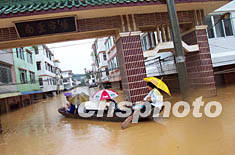 圖:廣東封開縣洪水受災(zāi)人數(shù)達(dá)六萬 2002年07月03日 19:44 ![]() 受上游廣西合面獅水庫泄洪的影響,廣東封開縣賀江水位急劇上漲,賀江沿線八個(gè)鄉(xiāng)鎮(zhèn)受災(zāi)人數(shù)達(dá)六萬三千多,直接經(jīng)濟(jì)損失在一億元人民幣以上。該縣南豐鎮(zhèn)洪水超警戒水位四米,最深水位超過六米,二樓以下的房屋被淹,街上到處可見汽車被淹在水中,大街小巷汪洋一片。作者:黃耀輝