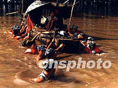 圖:廣東茂名二十萬人受水災海軍雨夜救人 2002年07月04日 18:10 ![]() 廣東茂名地區(qū)連降暴雨,二十萬人受災,其中數(shù)千人受洪水圍困。南海艦隊數(shù)百名海軍陸戰(zhàn)隊官兵雨夜馳援,展開搶險救災工作,安全轉(zhuǎn)移災民一千多人。圖為官兵們在救護受災群眾。作者:牛韓