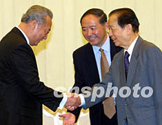 圖:錢其琛會(huì)見(jiàn)臺(tái)灣知名企業(yè)家大陸考察團(tuán) 2002年07月05日 20:15 ![]() 中國(guó)國(guó)務(wù)院副總理錢其琛五日在北京會(huì)見(jiàn)由辜濂松(左一)等組成的“臺(tái)灣知名企業(yè)家大陸考察團(tuán)”一行。作者:鄭萍萍