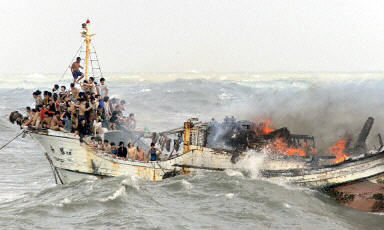 海上惡夢(mèng)連連 臺(tái)報(bào)披露大陸漁工遭受不人道歧視 2002年07月10日 15:28 ![]() 漁工擠到船的一端急切待救。(法新圖) “元?jiǎng)俣?hào)”起火時(shí)風(fēng)浪甚大,漁工幾乎被巨浪吞噬。 中新網(wǎng)香港7月10息:臺(tái)北訊,作為祖國(guó)大陸漁工“海上旅館”用的臺(tái)灣屏東籍“元?jiǎng)俣?hào)”漁工船,昨天在高雄海域發(fā)生火災(zāi)。事件中132人獲救,一人失蹤。今天有臺(tái)灣媒體介紹大陸漁工在船屋中的艱辛境遇,批評(píng)臺(tái)當(dāng)局罔顧大陸同胞生命安全的做法。 臺(tái)灣《聯(lián)合報(bào)》報(bào)道說(shuō),昨天死里逃生的“元?jiǎng)俣?hào)”上的大陸漁工,談起船屋種種境況,不無(wú)憤懣不平。在船難中受傷住院的張永說(shuō):“每天睡覺(jué)沒(méi)有固定的位置,廚房、機(jī)艙、甲板都成了臥室。一坪大的空間要擠上四個(gè)人,進(jìn)艙是用爬的,睡覺(jué)從沒(méi)伸直過(guò)腳,很少吃到蔬果,真苦!” “漁工通常要住在海上旅館十天以上,再搭船出海,期間吃喝拉撒睡都在船上又臟又臭。漁工都期盼能早點(diǎn)出海捕魚(yú),不必像住海上旅館一樣,夢(mèng)魘連連。”這次意外中頭、手受創(chuàng)而住院的陳良紅訴苦。 報(bào)道說(shuō),來(lái)自祖國(guó)大陸各地的漁工,為了每個(gè)月賺一百多美元工資,長(zhǎng)期忍受“海上旅館”的惡劣環(huán)境。此次出事的“元?jiǎng)俣?hào)”,不到80噸,卻擠了133人。報(bào)道指出,有的船屋更住了一百五、六十人,漁工連睡覺(jué)翻身都困難。 據(jù)報(bào)道,臺(tái)當(dāng)局“海巡署”及警方調(diào)查“元?jiǎng)俣?hào)”起火原因時(shí),獲救住院的漁工沈繼兵指出,7日晚上他們就發(fā)現(xiàn)發(fā)電機(jī)房冒火花,斷電好幾次,向輪機(jī)長(zhǎng)反映后,輪機(jī)長(zhǎng)竟說(shuō)“沒(méi)什么關(guān)系”,不料終于發(fā)生火警。 “元?jiǎng)俣?hào)”上原有128名大陸漁工,5名越南漁工。昨天火災(zāi)過(guò)程中,臺(tái)灣有關(guān)方面出動(dòng)直升飛機(jī),經(jīng)過(guò)近5個(gè)小時(shí),救出132人,其中10人受創(chuàng)住院,一名大陸漁工落海失蹤。 昨天發(fā)生事故的“元?jiǎng)俣?hào)”是臺(tái)灣屏東縣籍的漁工“海上船屋”。據(jù)悉,因臺(tái)當(dāng)局動(dòng)不動(dòng)視祖國(guó)大陸漁工為“危險(xiǎn)份子”,不允許祖國(guó)大陸漁工上岸,這一類(lèi)船屋被專(zhuān)門(mén)用于出海作業(yè)漁船雇用的大陸漁工居住。 但媒體指出,島內(nèi)當(dāng)局如此對(duì)待祖國(guó)大陸漁工,不僅“海上船屋”的環(huán)境臟擠早為人詬病,且造成臺(tái)當(dāng)局不人道的負(fù)面形象。 報(bào)道指出,逗留在“海上船屋”的大陸漁工,除非避臺(tái)風(fēng)和發(fā)生急病,不被容許上岸。相反,臺(tái)灣商船、漁船人員則可自由地在祖國(guó)大陸的港口上岸。 據(jù)報(bào)道,島內(nèi)許多漁會(huì)代表在不同會(huì)議場(chǎng)合,再三以人道理由,并與東南亞外勞所獲優(yōu)厚待遇作對(duì)比,要求臺(tái)灣當(dāng)局不要歧視大陸漁工,公平對(duì)待。他們希望在陸地上安置大陸漁工,但多年的力爭(zhēng)至今未見(jiàn)成效。 海峽兩岸關(guān)系協(xié)會(huì)有關(guān)人士昨天就“元?jiǎng)俣?hào)”船屋起火,人員大部獲救之事發(fā)表談話(huà)表示,大陸有關(guān)方面對(duì)遇險(xiǎn)漁工的境況十分關(guān)心,海協(xié)已致函“兩岸人民服務(wù)中心”,向臺(tái)灣有關(guān)方面及參與救助的全體人員表達(dá)誠(chéng)摯的謝意。但海協(xié)也希望臺(tái)灣方面改變不合理做法,確保大陸漁工應(yīng)有的合理待遇和人身安全,防止類(lèi)似事件再度發(fā)生。 據(jù)島內(nèi)媒體報(bào)道,祖國(guó)大陸漁工安置問(wèn)題在昨天這場(chǎng)海上大火事件后再度引起關(guān)注,已有“立委”向當(dāng)局“行政院”緊急質(zhì)詢(xún),并呼吁當(dāng)局盡快研究在蘇澳等五處漁港設(shè)置大陸漁工安置中心的計(jì)劃。 相關(guān)報(bào)道:高雄外海漁船火警 十一名大陸漁工送醫(yī) 相關(guān)報(bào)道:大陸船屋在高雄港起火獲救 海協(xié)就此事發(fā)表談話(huà) 相關(guān)報(bào)道:大陸漁工船失火:133人獲救 2人重傷 1人失蹤 相關(guān)報(bào)道:大陸又提供高價(jià)值資料 華航空難調(diào)查發(fā)現(xiàn)新線(xiàn)索 相關(guān)報(bào)道:"突然巨浪打來(lái)…"大陸獲救漁工回憶海上大火驚魂 相關(guān)報(bào)道:臺(tái)灣對(duì)祖國(guó)大陸出口趨增 上半年同比增長(zhǎng)逾七成 相關(guān)報(bào)道:大陸漁工船起火132人獲救 落水失蹤人數(shù)說(shuō)法不一 相關(guān)報(bào)道:圖文:大陸漁工船屋被燒毀 128名漁工全部獲救 相關(guān)報(bào)道:七位大陸漁工在高雄急救 有人跳海 船屋沉沒(méi)一半 相關(guān)報(bào)道:臺(tái)灣船屋失火 救起60余大陸漁工 尚有30多待救 相關(guān)報(bào)道:搭載大陸漁工的船只在臺(tái)灣海峽失火 100多人待救 相關(guān)報(bào)道:一艘載有100多人的大陸漁船在臺(tái)灣海峽著火