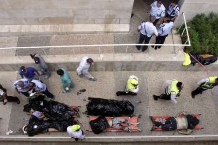 (圖)耶路撒冷希伯來大學(xué)餐廳發(fā)生爆炸致7死85傷 2002年07月31日 19:08 ![]() ![]() ![]() 中新網(wǎng)北京7月31日消息:據(jù)美聯(lián)社報(bào)道,耶路撒冷東部希伯來大學(xué)的一個(gè)餐廳31日午餐時(shí)間發(fā)生爆炸,造成7人死亡,85人受傷,其中14人重傷。 巴勒斯坦激進(jìn)組織伊斯蘭抵抗運(yùn)動(dòng)哈馬斯宣布對(duì)此次爆炸事件負(fù)責(zé),并稱這是對(duì)以色列23日轟炸加沙居民樓進(jìn)行的報(bào)復(fù)。 雖然以色列的各大學(xué)目前均已放假,但發(fā)生爆炸時(shí)仍有許多留校學(xué)生正在咖啡廳用午餐。 事發(fā)后,新華社記者與在該大學(xué)區(qū)讀書的幾名中國留學(xué)生取得了聯(lián)系。據(jù)他們介紹,由于學(xué)校放假,中國學(xué)生均離開了學(xué)校,在爆炸中沒有中國學(xué)生受傷。目前有十幾名中國留學(xué)生在該大學(xué)區(qū)讀書。 死傷的人員中大部分為18-30歲的學(xué)生,其中許多為外國學(xué)生。這是自以巴沖突爆發(fā)以來,在以色列校園內(nèi)發(fā)生的首起爆炸襲擊事件。 巴勒斯坦民族權(quán)利機(jī)構(gòu)事后發(fā)表聲明譴責(zé)爆炸事件。以色列總理沙龍取消了當(dāng)天的所有日程安排,預(yù)計(jì)以色列內(nèi)閣將召開會(huì)議。 美國總統(tǒng)布什強(qiáng)烈譴責(zé)本次襲擊。他呼吁巴勒斯坦民族權(quán)利機(jī)構(gòu)致力制止恐怖主義,并強(qiáng)調(diào)美國不會(huì)放棄推動(dòng)中東實(shí)現(xiàn)和平。 在昨日,巴勒斯坦激進(jìn)份子,在耶路撒冷市中心,發(fā)動(dòng)自殺式襲擊,造成一死七傷。