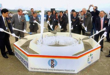 圖:朝鮮輕水反應(yīng)堆核電站主體工程開(kāi)工典禮 2002年08月07日 18:43 ![]() 朝鮮半島能源開(kāi)發(fā)組織(KEDO)援建朝鮮的輕水反應(yīng)堆核電站主體混凝土工程8月7日舉行了開(kāi)工典禮。