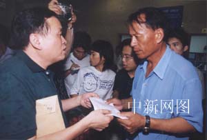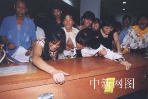 圖文:在以色列遇難的兩名福建勞工遺體運抵福州 2002年08月07日 22:43 ![]() 圖為福建中福公司副總經(jīng)理林炎,向死難者許恒勇、李斌的家屬發(fā)送慰問金。中新社記者 劉可耕 攝 ![]() 圖為許恒勇的親屬哭倒在他的棺木上。中新社記者 劉可耕 攝 ![]() 圖為李斌的一雙兒女披麻戴孝迎接父親棺木。中新社記者 劉可耕 攝 中新社福州八月七日電 (記者 陳悅)今晚七時許,從香港起飛的MU五七八航班運載著在上月以色列特拉維夫爆炸案中遇難的福建勞工許恒勇和李斌的遺體在福州長樂機場降落。七時半,等候多時的親屬們迎來了遺體,隨即護送靈柩返回福州平潭故鄉(xiāng)。 等候遺體時,兩人的親屬都沉浸在巨大的悲痛中。李斌和許恒勇的妻子自出發(fā)起就痛哭不絕,此時已聲音嘶啞;許恒勇的妹妹則突然昏厥過去,良久才蘇醒。許恒勇的叔叔介紹,兩人的親屬是今日早些時候冒著暴雨從平潭啟程的,許家家境不好,許恒勇是家中的頂梁柱,他的去世給家人帶來巨大打擊,他十三歲的大兒子受刺激精神恍惚,一度住院。李斌的親屬亦介紹,李斌的岳父聽到噩耗后不久就去世了。 七時半許,靈柩被運出機場貨運出口,家屬們護送棺木運上車。據(jù)稱,兩人原所屬的福建中福公司亦來機場接靈柩并為兩人辦理相關(guān)手續(xù)。該公司副總經(jīng)理林炎向兩人送上該公司職員募集的捐款。林炎介紹,以色列還將派官員及保險公司職員來北京商討賠償事宜。據(jù)悉,二人雖均屬合法入境,但許恒勇已“跳槽”離開原打工單位,而李斌屬超期非法滯留,故二人獲得的賠償標(biāo)準(zhǔn)將無法完全比照在“四·一二”耶路撒冷爆炸案中遇難的福建勞工獲得的以方賠償。(完)