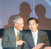 陳水扁與李登輝同臺現身 一唱一和鼓吹“臺獨” 2002年08月12日 09:49 ![]() 李登輝(左)與陳水扁交頭接耳(臺灣聯合報圖) 中新網香港8月12日消息:臺北訊,陳水扁與李登輝昨天先后在“臺獨”黨派“臺灣團結聯盟”一周年“黨慶”活動中放話,再放“臺獨”厥詞,而且兩人致詞內容明顯相互呼應。 在“臺聯黨”的“特別安排”下,陳水扁與李登輝兩人繼陳氏拋出“一邊一國論”之后,首度公開同臺亮相。 陳水扁在發(fā)言時未提所謂“一邊一國”論,但又抹黑中國大陸對臺灣“武力威脅”和“國際打壓”,并鼓動說:“對的信念絕不放棄,對的路要繼續(xù)走! 陳水扁還用閩南語說,“不能被人唬得驚驚到”,要“歡喜看未來”。 李登輝隨后發(fā)言公開支持陳水扁,聲稱“百分之百”支持所謂“一邊一國”論,并指此論為“事實的表述”。這名“臺聯黨”的“精神導師”更鼓吹堅持臺灣“主權獨立”,并指兩岸是“國與國的關系”。 李登輝呼應陳水扁“不要被嚇倒”的說法,對“臺獨”份子放話說“免驚啦”,而且“不要被臺北‘外來政權’的大本營與統(tǒng)派媒體嚇倒”。 島內媒體報道指出,陳水扁與李登輝先后發(fā)言的內容明顯相互呼應,陳水扁要“臺聯黨”在當局“立法院”中力拼李登輝定的“指標”說35席,李登輝則說“很不好意思,還差20多席”;陳水扁要大家不要被中國大陸“嚇倒”,李登輝則要大家“安心”。兩人不僅相偕進場,而且陳水扁在臺上講話時,臺下的李登輝頻頻拍手。