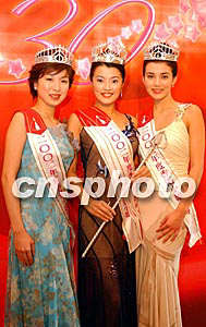![]() 二00二年度香港小姐競選冠、亞、季軍,8月12日亮麗登場領(lǐng)獎會見新聞界,(左起)季軍胡家惠、冠軍林敏俐、亞軍左慧琪。洪少葵 攝