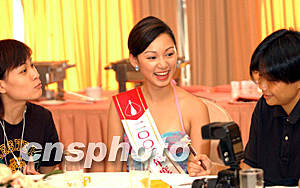 ![]() 參選香港小姐競選的佳麗嘉碧儀,賽前連奪多個大獎而在決賽晚卻大熱倒灶,三甲不入。12日仍然與傳媒談笑風(fēng)生。洪少葵 攝