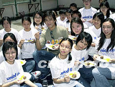 ![]() 聯(lián)合國(guó)兒童基金香港會(huì)員會(huì)大使陳曉東8月13日在香港出席「UNICEF小熊穿梭全城Fun」慈善義賣活動(dòng)記者會(huì),陳曉東與一眾義工朋友烈日下一同參與品嘗「貧苦午餐」。鄧慶樂(lè) 攝